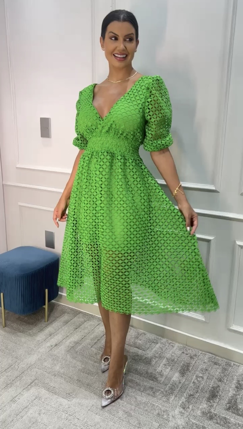 OPORTUNIDADE - Vestido Vitória Manga 3/4 Verde