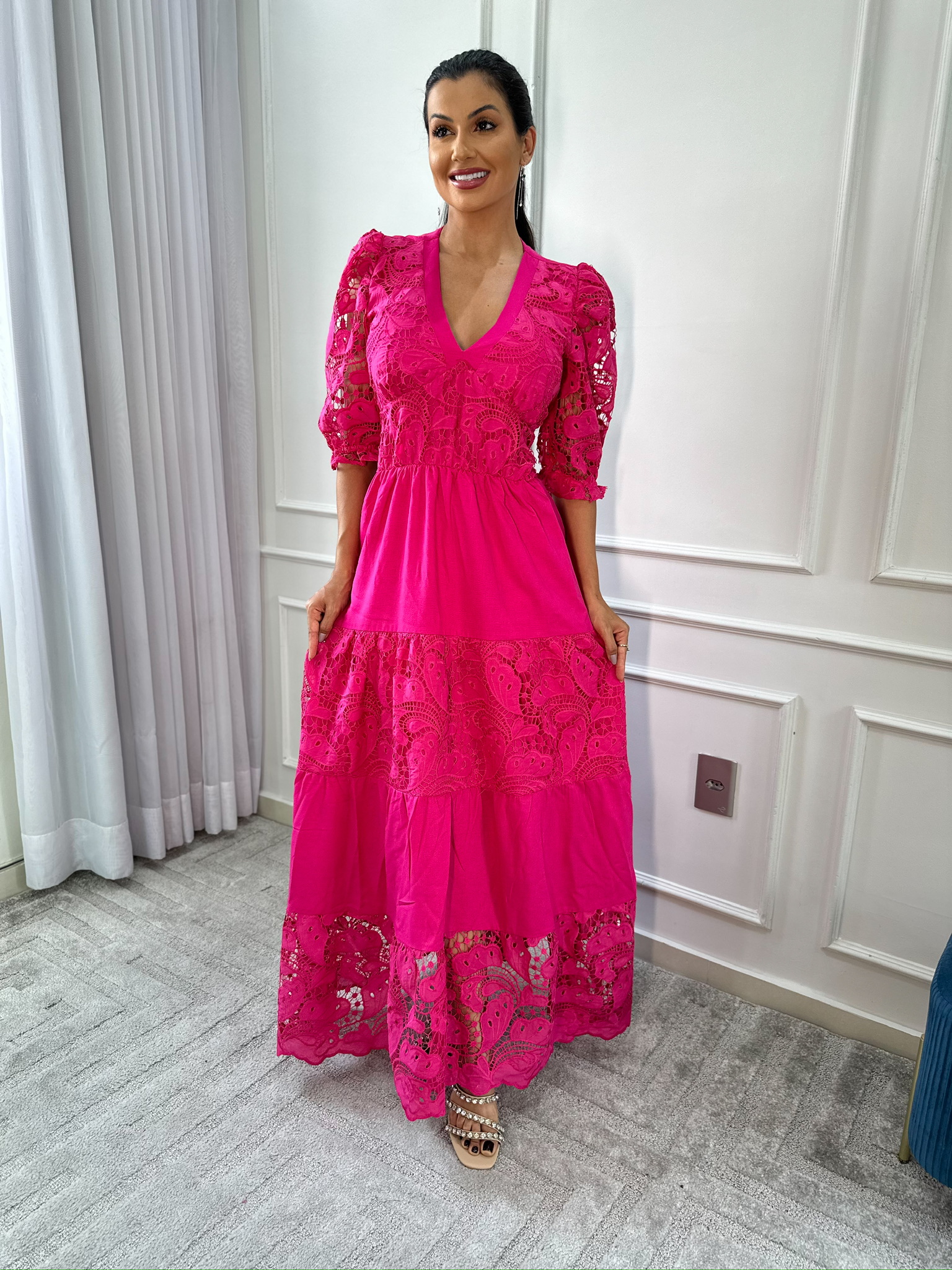 VESTIDO DE LINHO COM RENDA MADALENA: