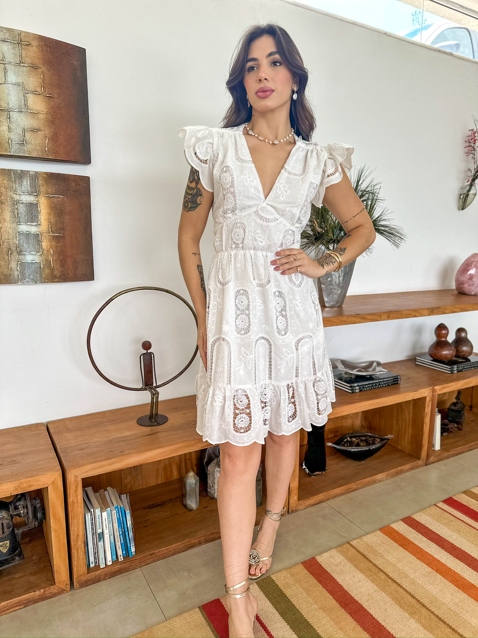 Com sua modelagem única e delicada, este vestido oferece um visual sofisticado sem perder o toque casual. Além disso, ele combina perfeitamente com diversas ocasiões.